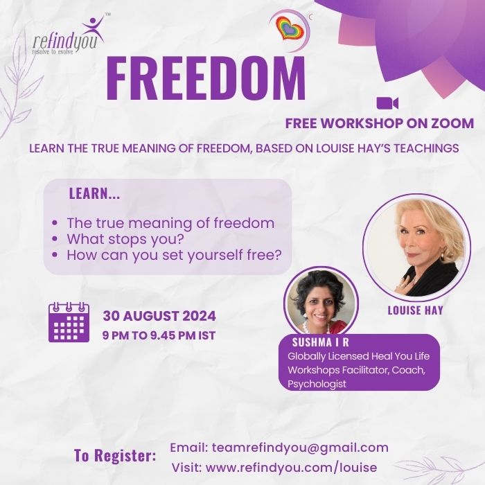 At ReFind You, the topic we will be covering is Freedom! Join us for this free 45 minute session, on Friday, 30th August, at 9 pm IST on Zoom. Fill out the form below, and receive the Zoom link on email to attend the session.